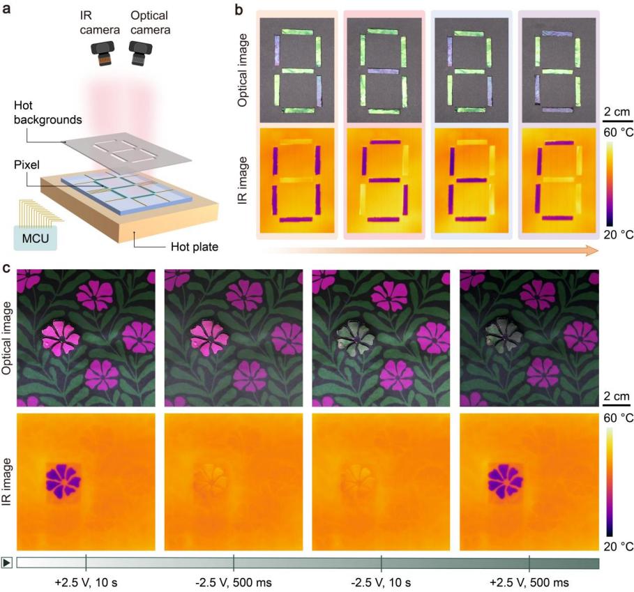 此项研究成果在实现可见光和红外波段的“按需组合”方面迈出了关键一步,展示了在可见光/热红外光谱调控、多光谱信息加密编码显示器件和新型光学皮肤等领域的巨大应用潜力。